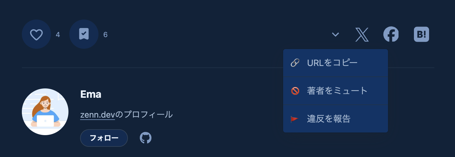 投稿ページのメニューボタンよりユーザーのミュートが可能