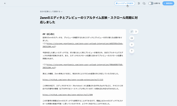 本日より、Zennの記事編集ページで、新しいエディタが利用可能になりました。
