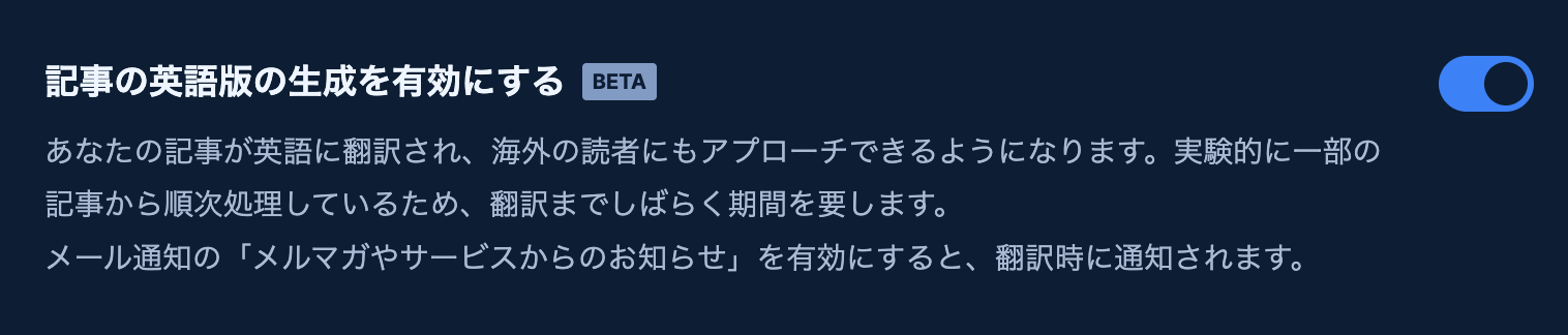 記事の英語版生成の実験的な提供を開始します(Beta)
